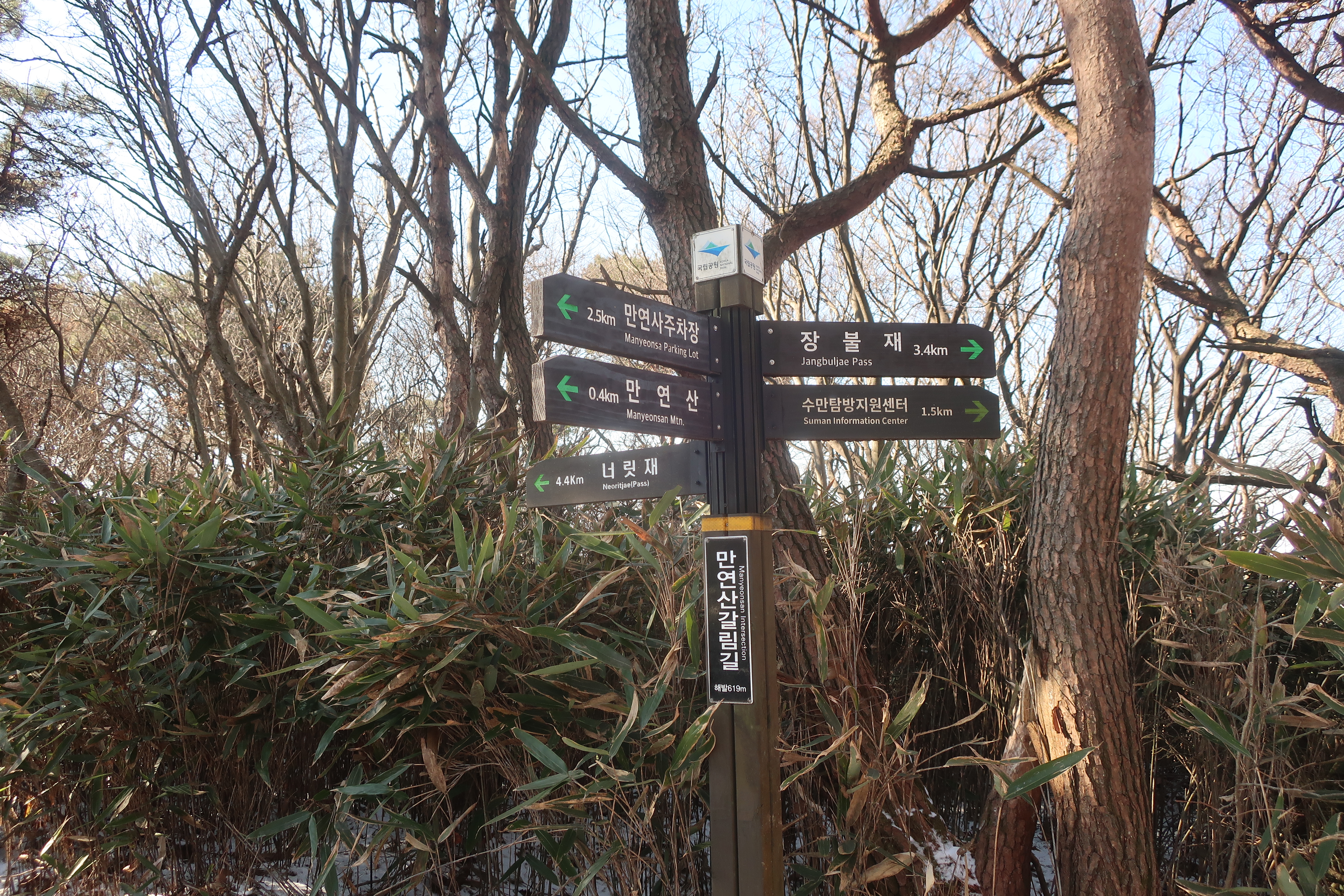 이곳에서 이정표가 나오는데 우측으로 만연사가 아니고 오감만족길연결이라 써있다..