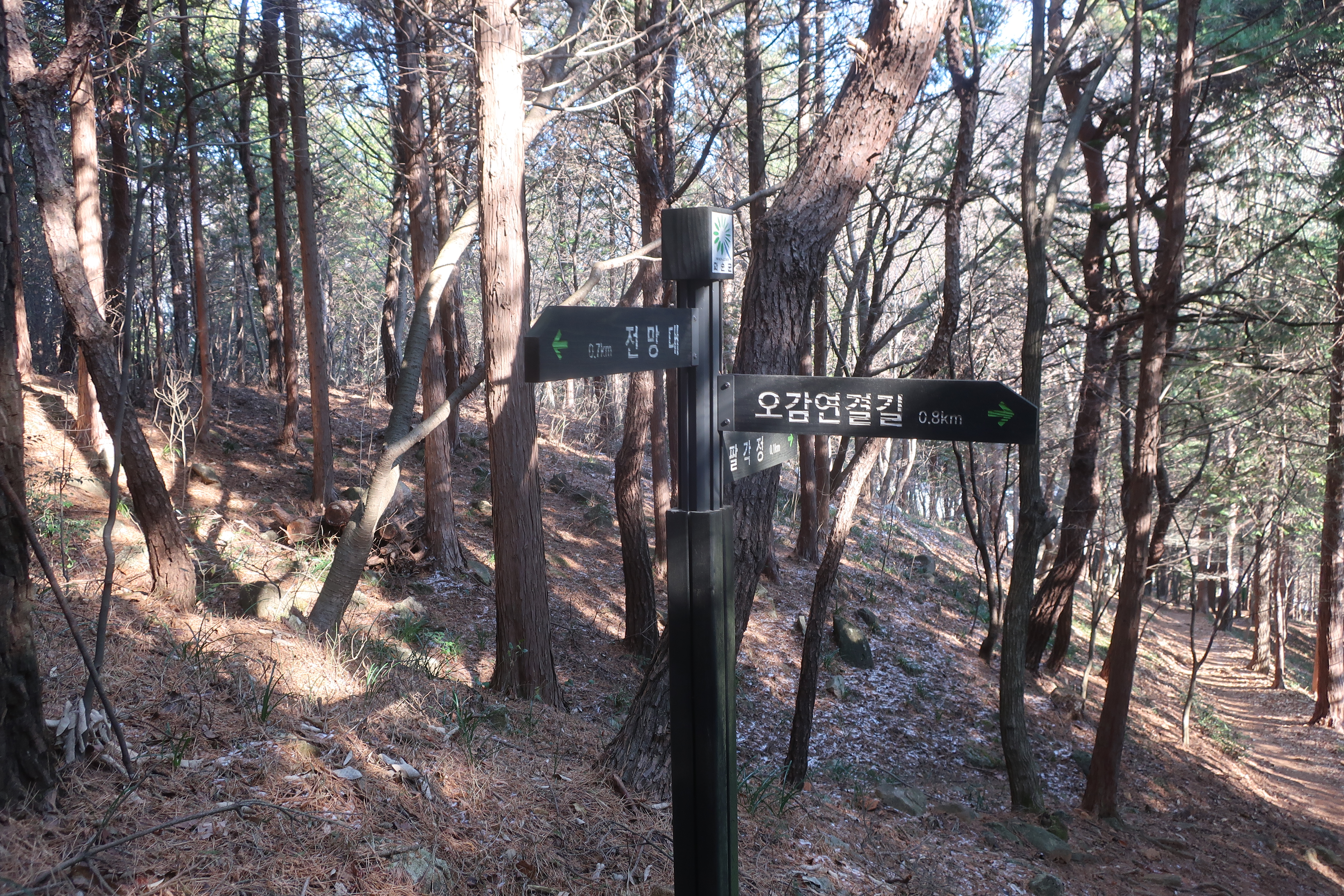 수레바위 이정표를 만나서 계속직진..오감연결길은 도대체 어디를 말하는지.내려오면서 내내 보이는 오감연결길 이정표다