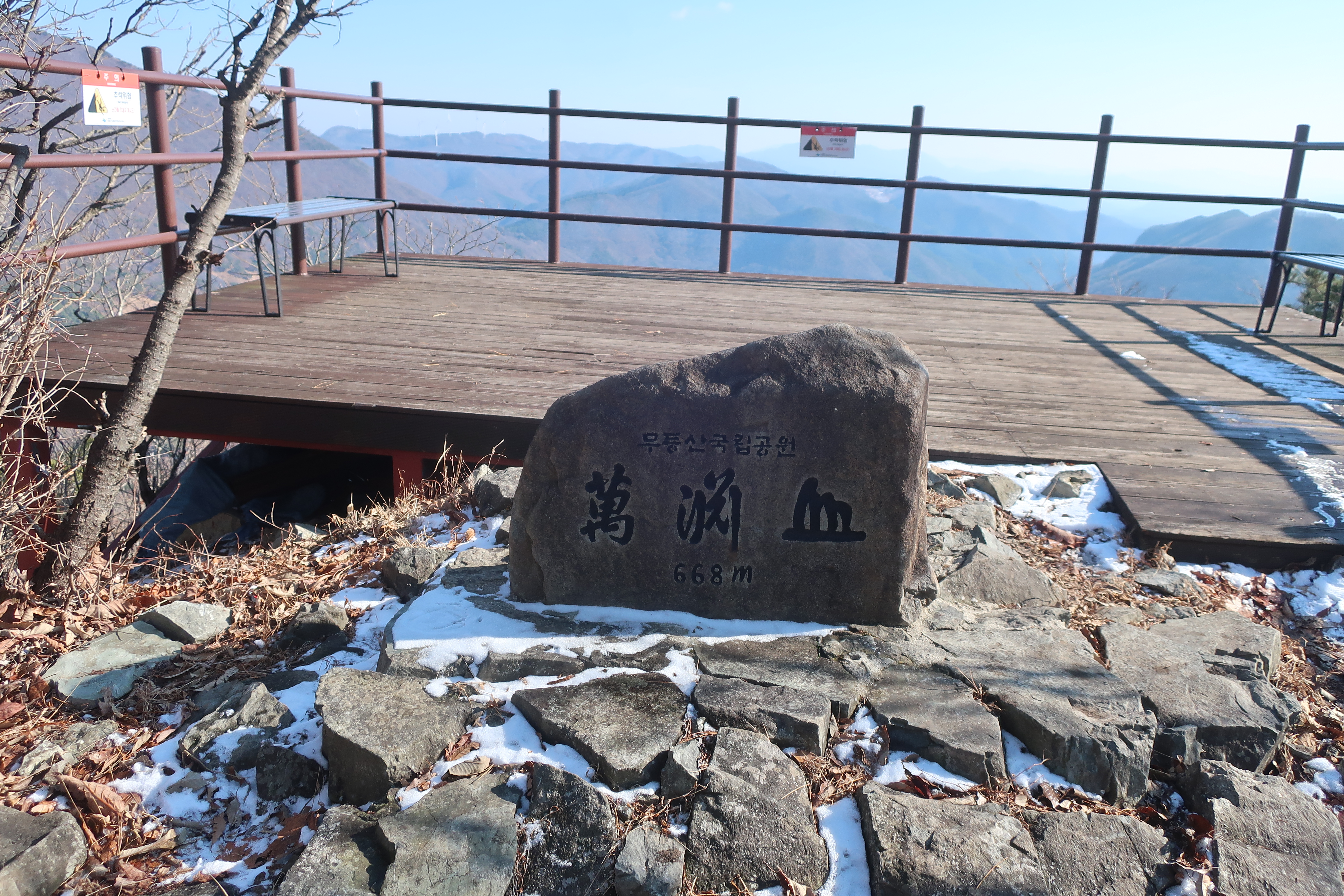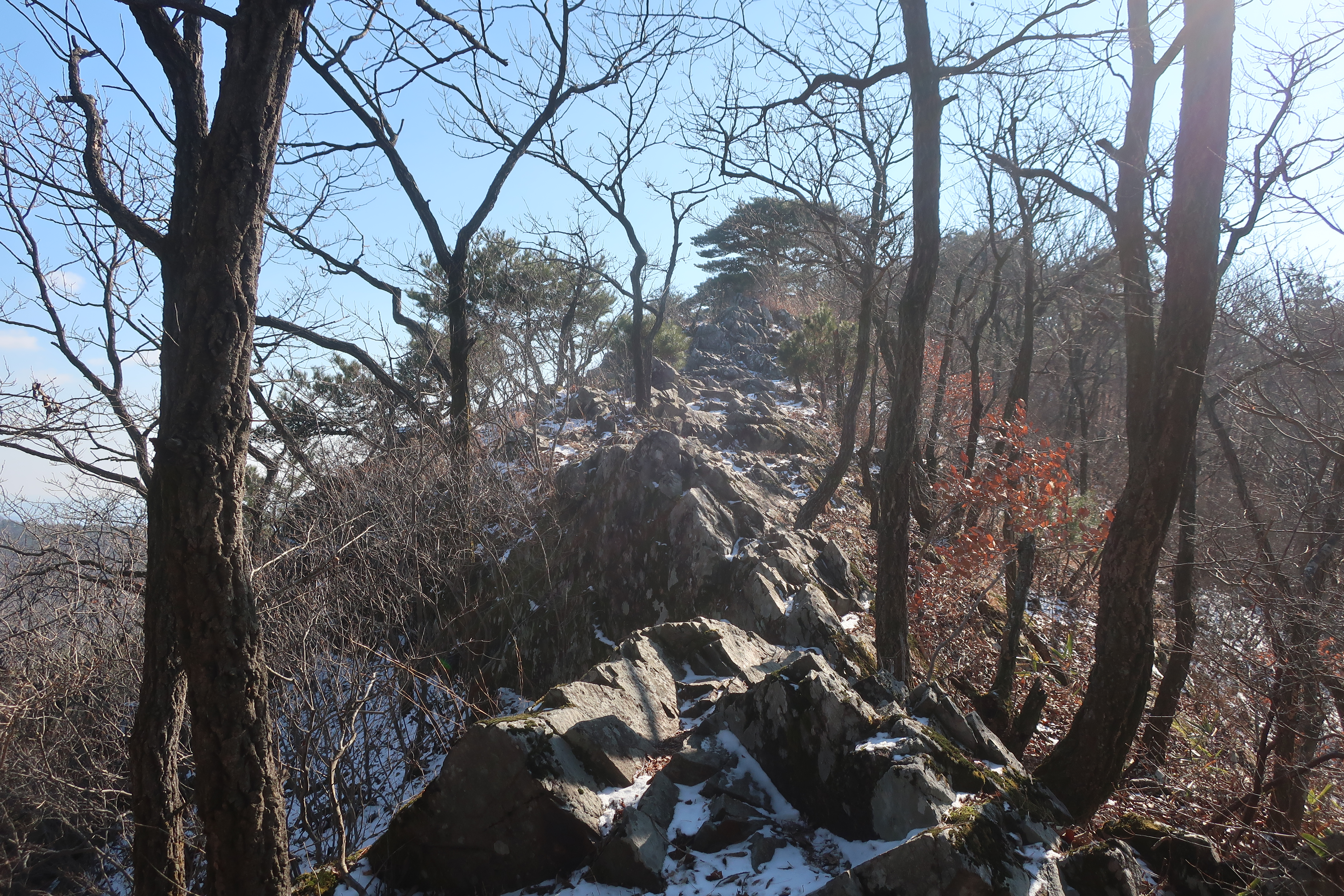 한번 더내려가야하는 암릉지대 전망대로 보인다..눈도 살짝 내렸고 해서 여기서 사진찍고 되돌아 나온다